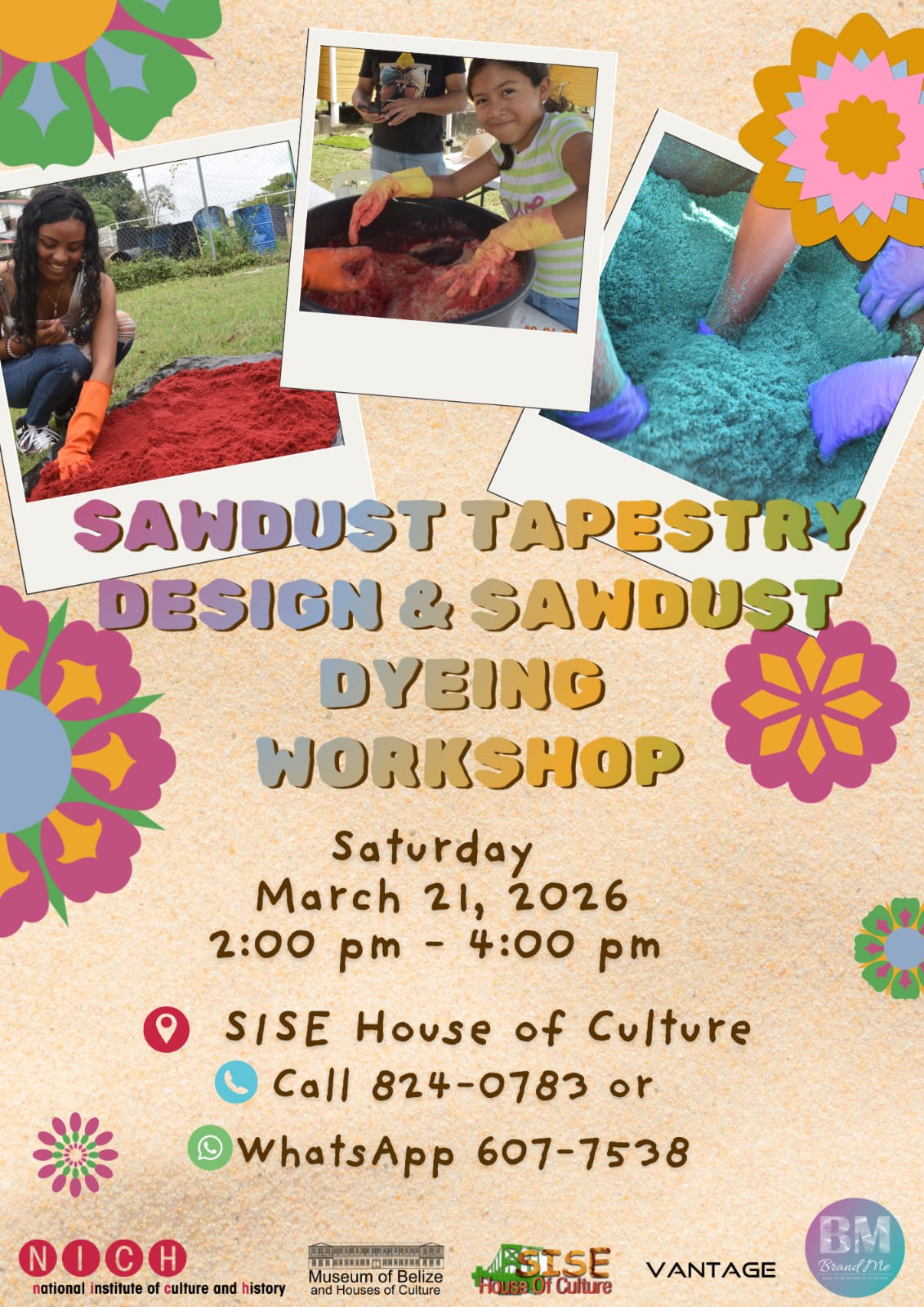 Weeks before Easter the SISE (San Ignacio & Santa Elena) House of Culture sets to the task of preparing for the creation of these intricate sawdust tapestries known as alfombras in the Spanish and, eventually, Central American traditions. In Belize they are called sawdust tapestries It is indeed a labor of love that requires the thoughtful coordination by the Director Karla Pinelo, who organized the hauling of many pounds sawdust from local mills to the community center one evening. Once it arrives with a team of volunteers led by the SISE Puede ("Yes You Can") Girls and SISE House of Culture staff, sieve huge sacks of sawdust to prepare it for dying. All of the preparation and tapestries has to be complete before the procession begins at Sacred Heart Church in the early evening on Good Friday - moving through the streets of San Ignacio and Santa Elena.