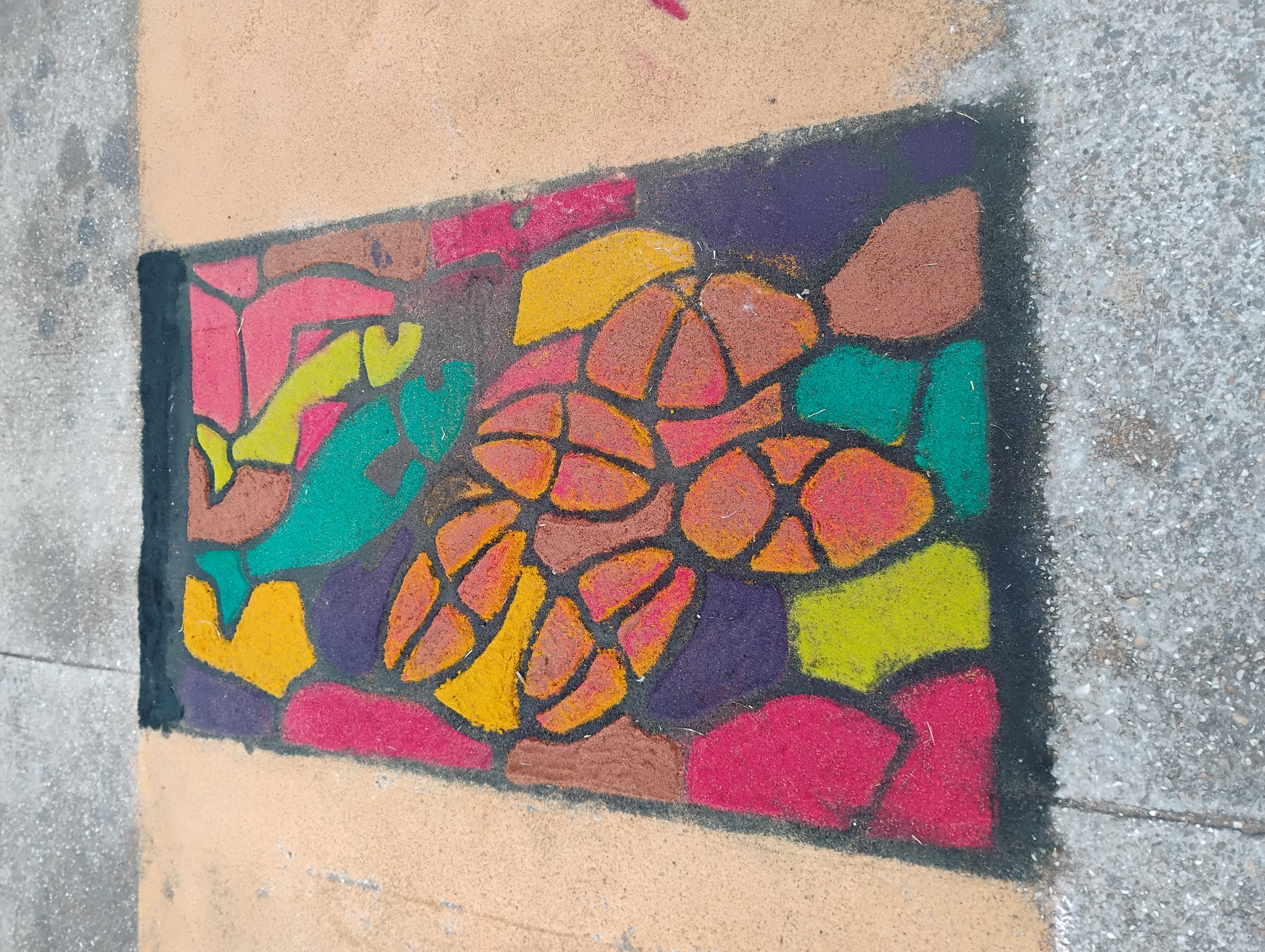 Alfombras sawdust tapestries are a centuries old tradition - an artistic and religious expression of gratitude for blessings throughout the year brought from Spain to the Americas. They are created with sawdust laid directly on the streets for a church procession that happens on Good Friday leading up to Easter. Many hours are required to create the tapestries that disappear under the footsteps of the religious procession only hours after they have been created.
